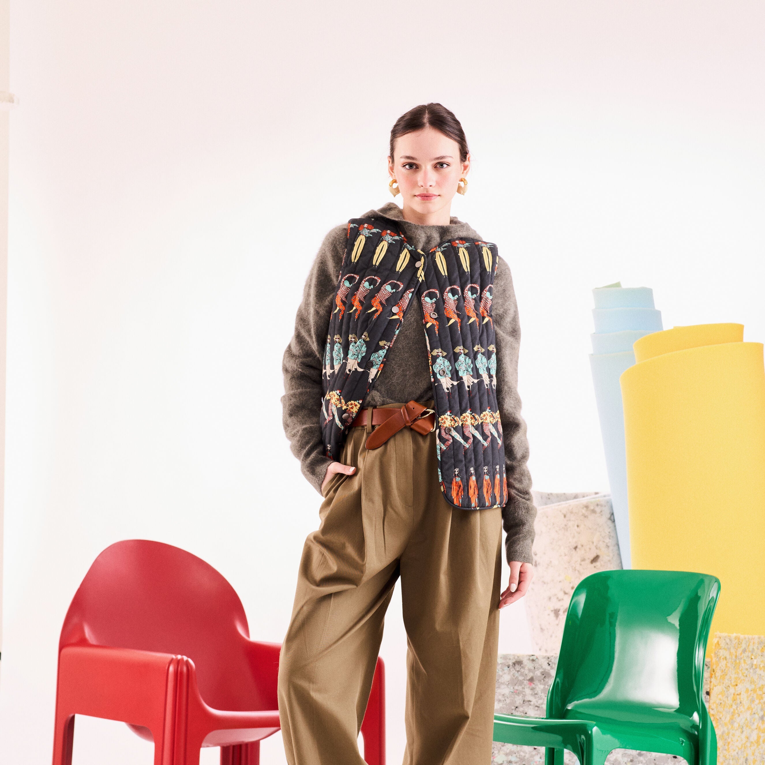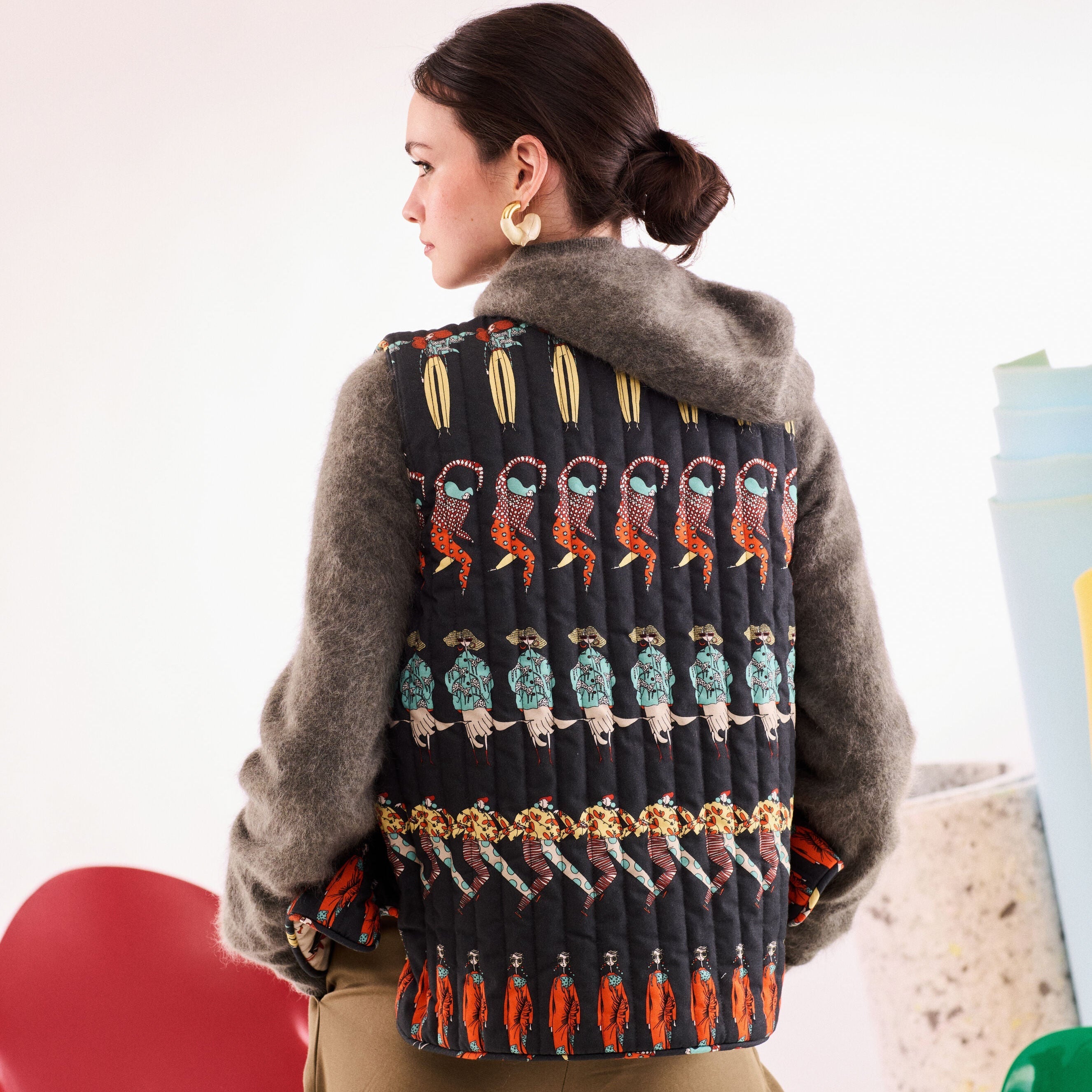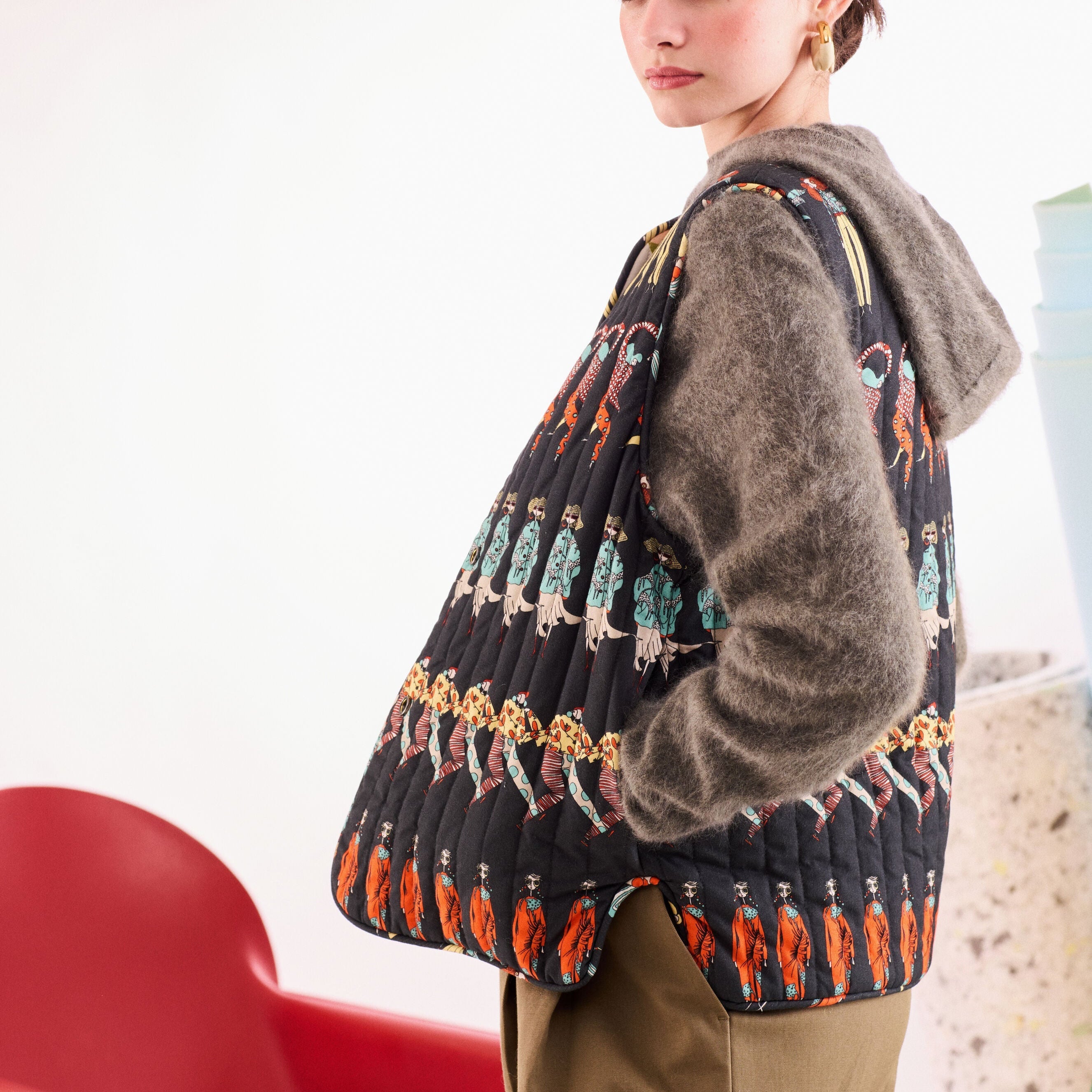 • %100 cotton, double-sided, quilted vest with hidden side pockets & rounded side slits.