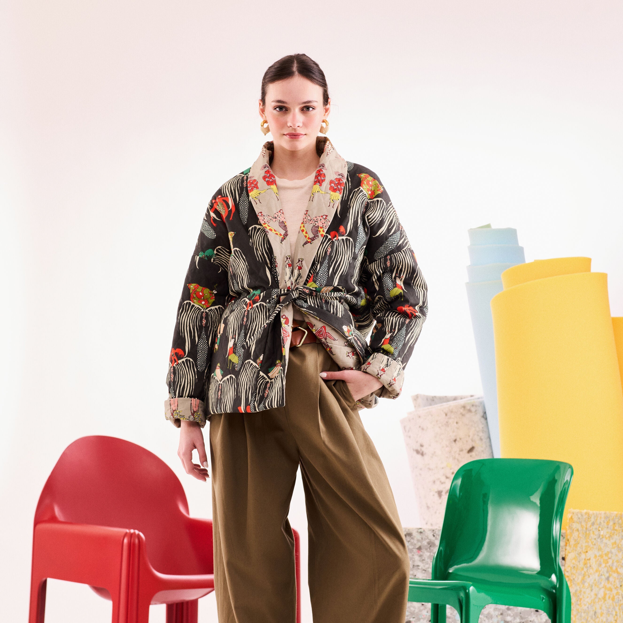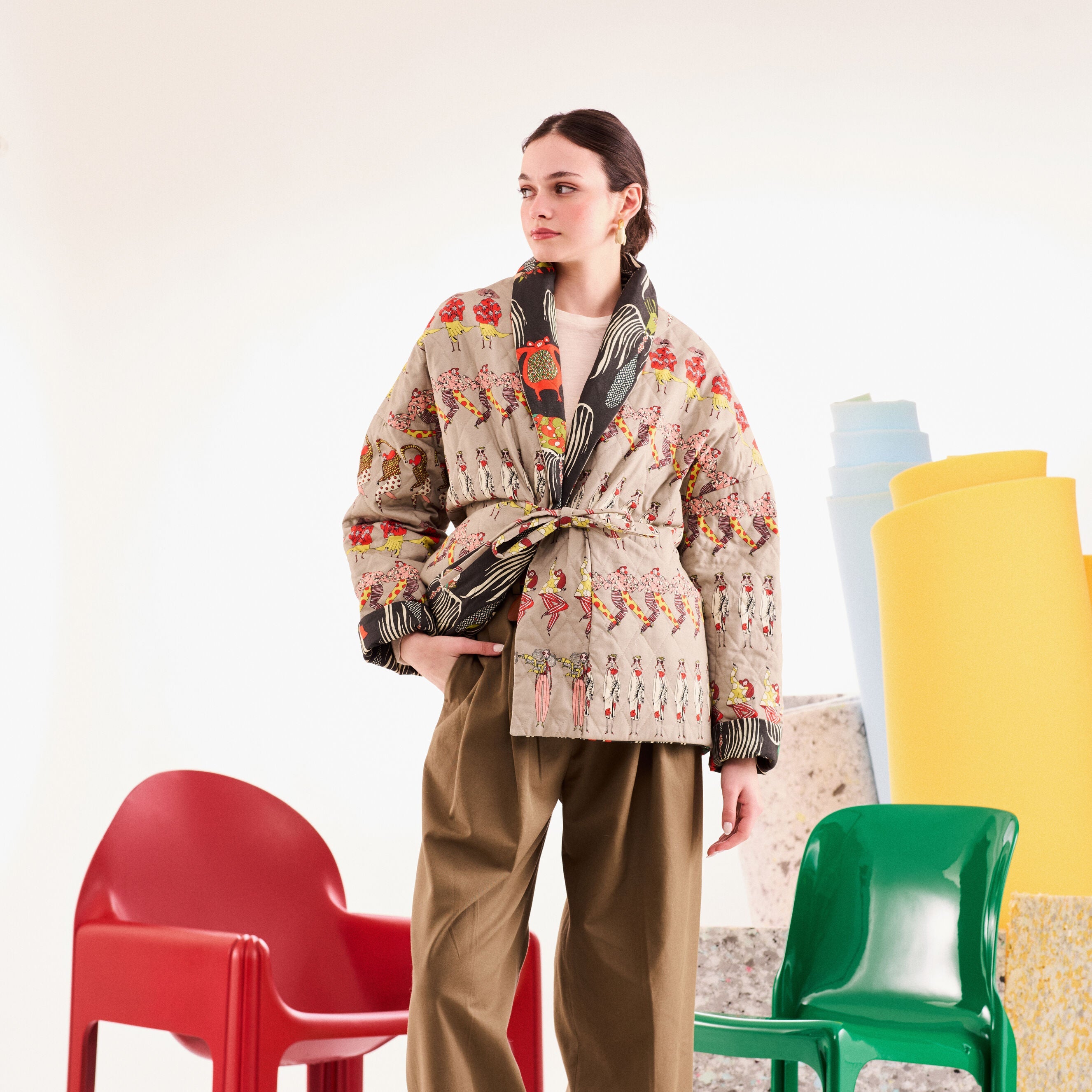 - %100 cotton, double-sided, quilted jacket with belt.